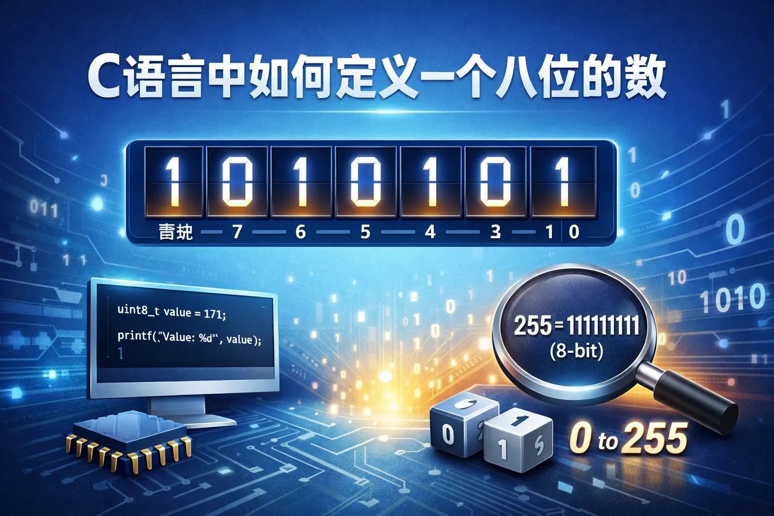 在 C 语言中定义八位的数,本质是定义一个占用 8 位(1 字节)的整数类型。常见方式包括使用 unsigned char 或 signed char,但为了确保跨平台精确为 8 位,推荐使用 C99 标准引入的 uint8_t 和 int8_t 类型。通过 stdint.h 可以获得精确位宽整数类型,避免因编译器差异带来的不确定性。在嵌入式开发、网络编程和位运算场景中,明确使用 8 位整数有助于提升代码的可移植性与稳定性。