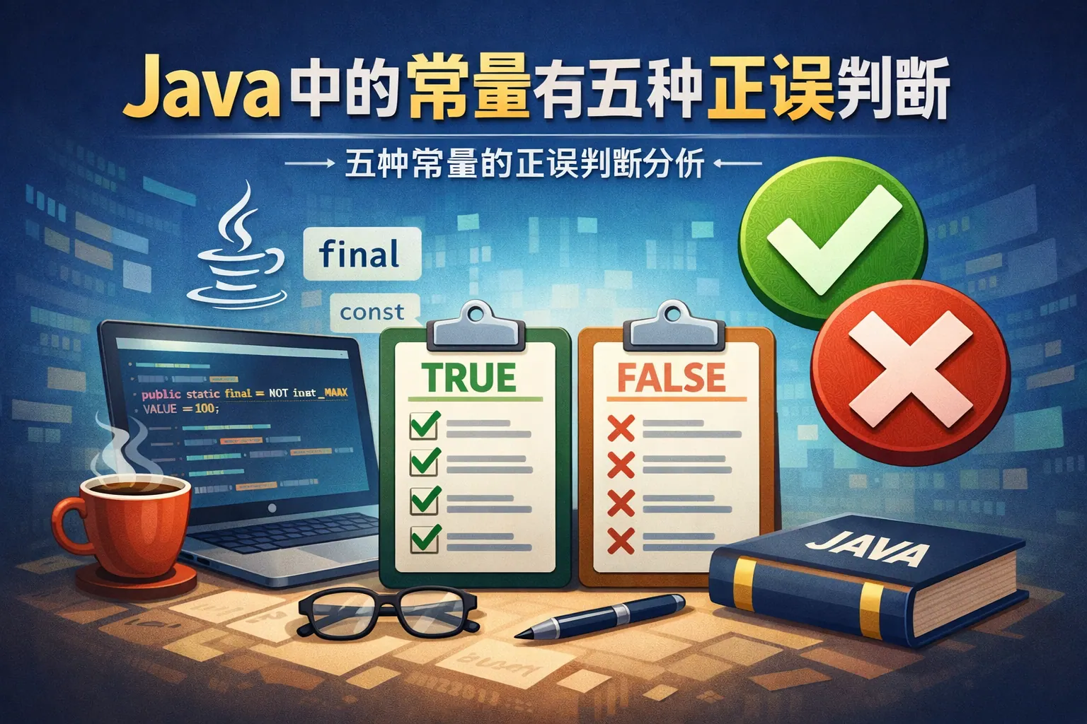 文章系统梳理了 Java 中常见的五种常量形式,并围绕常见判断逐一分析其正误。核心结论是:Java 的常量并非单一语法概念,而是由字面值、final、static final、接口常量和枚举共同构成,其中 static final 与枚举在工程实践中最具价值。文中强调了常量是否真正不可变、是否具备清晰语义边界,是判断其合理性的关键。通过对比与规范分析,文章帮助读者避免常见误区,建立更符合现代 Java 开发的常量使用认知。