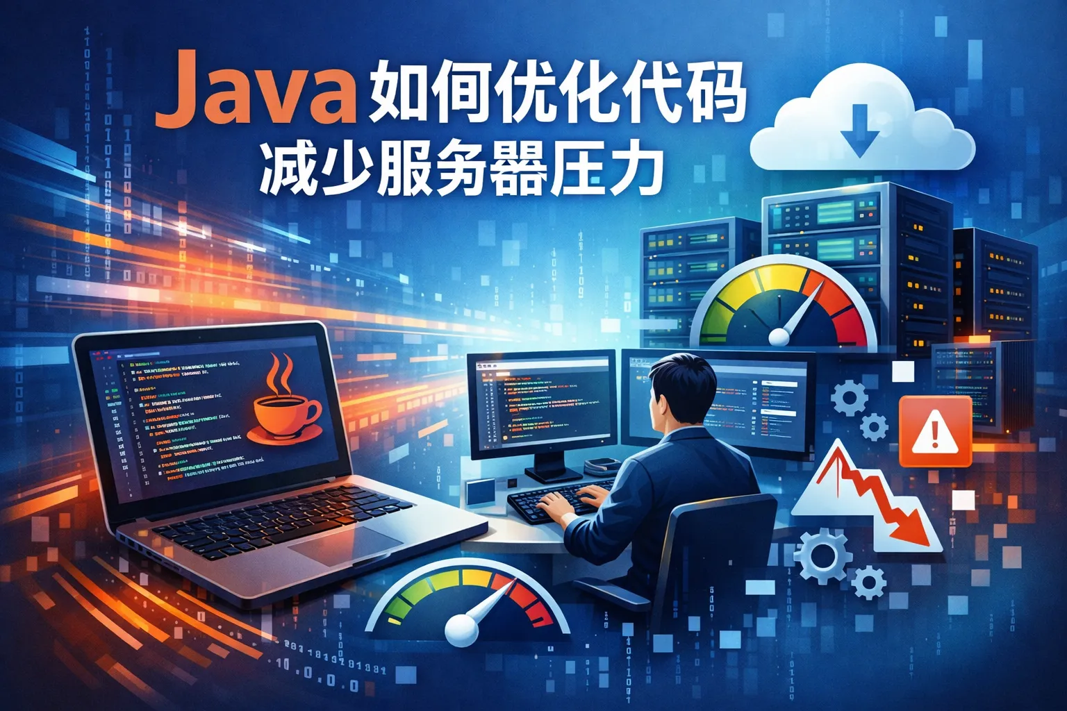 本文从内存模型、IO场景、计算任务、数据库交互、第三方调用五大维度,详细讲解Java代码优化减少服务器压力的实战方案,核心结论包括池化复用可降低75%内存占用、异步化改造可将吞吐量提升20倍以上,并结合权威行业报告数据与压测结果验证优化效果,最终搭建从监控到验证的优化闭环实现长期性能管控。