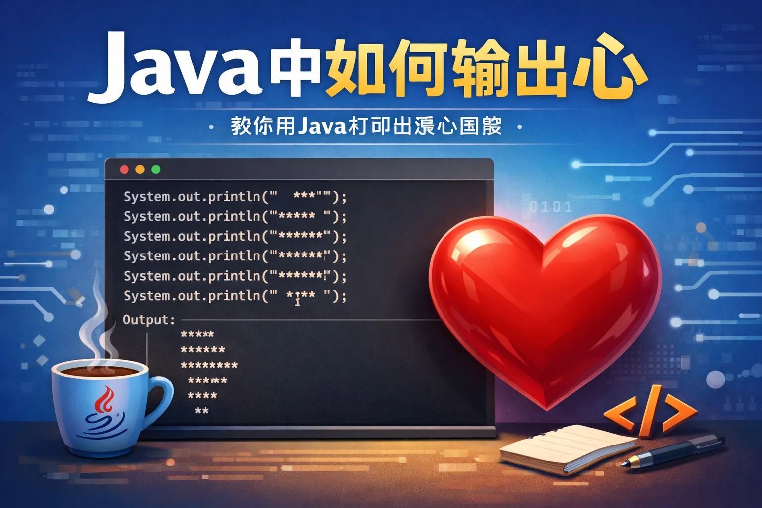 如何用Java输出一个桃心
