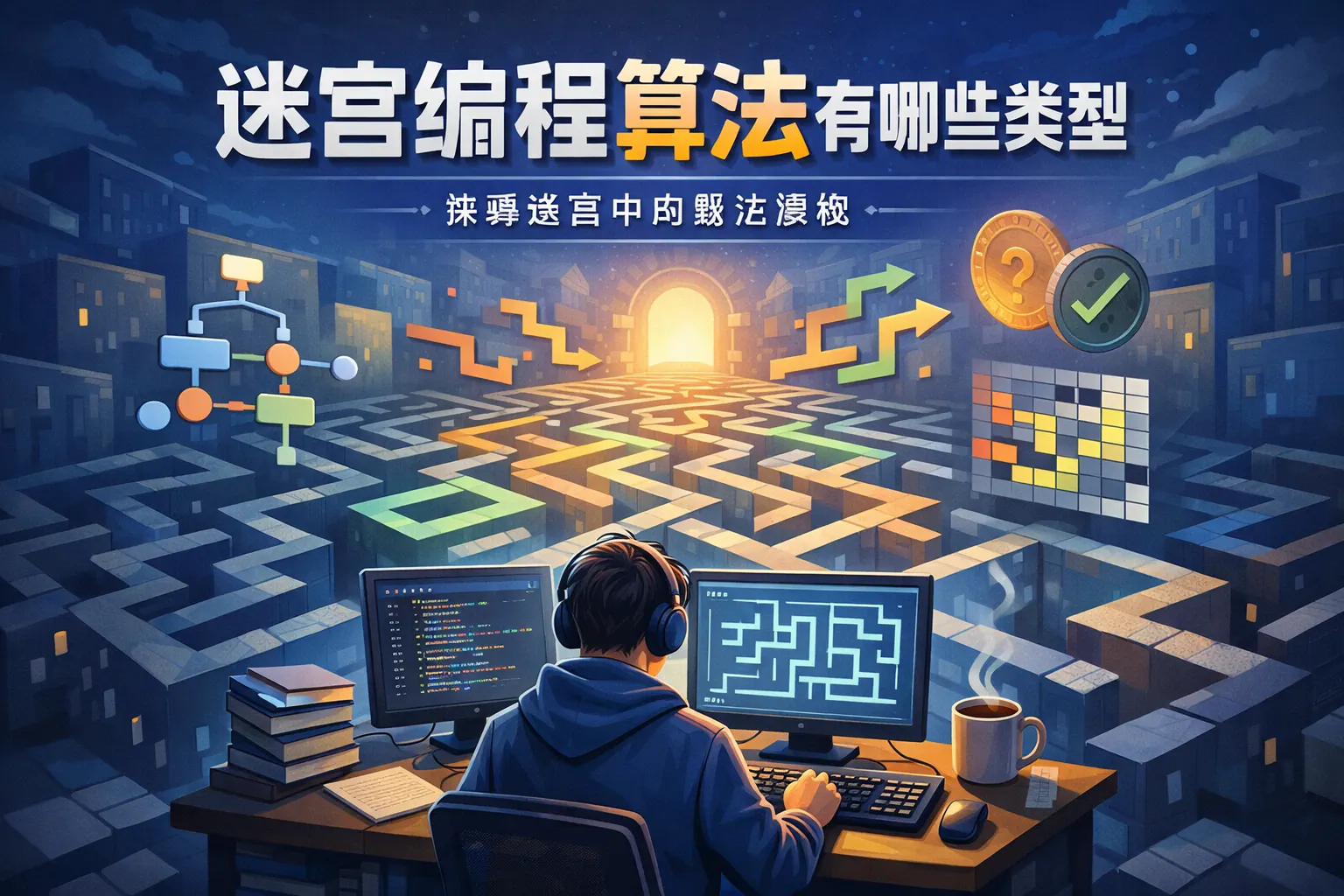 迷宫编程算法主要分为搜索类算法、最短路径算法、迷宫生成算法、启发式与智能优化算法以及随机化算法等类型。不同算法解决的问题不同,有的用于路径搜索,有的用于迷宫构建,还有的用于提升复杂环境下的决策效率。根据是否加权、是否需要最短路径以及迷宫规模大小,应选择合适的算法组合。随着人工智能发展,迷宫算法正逐步向智能化、自适应方向演进。