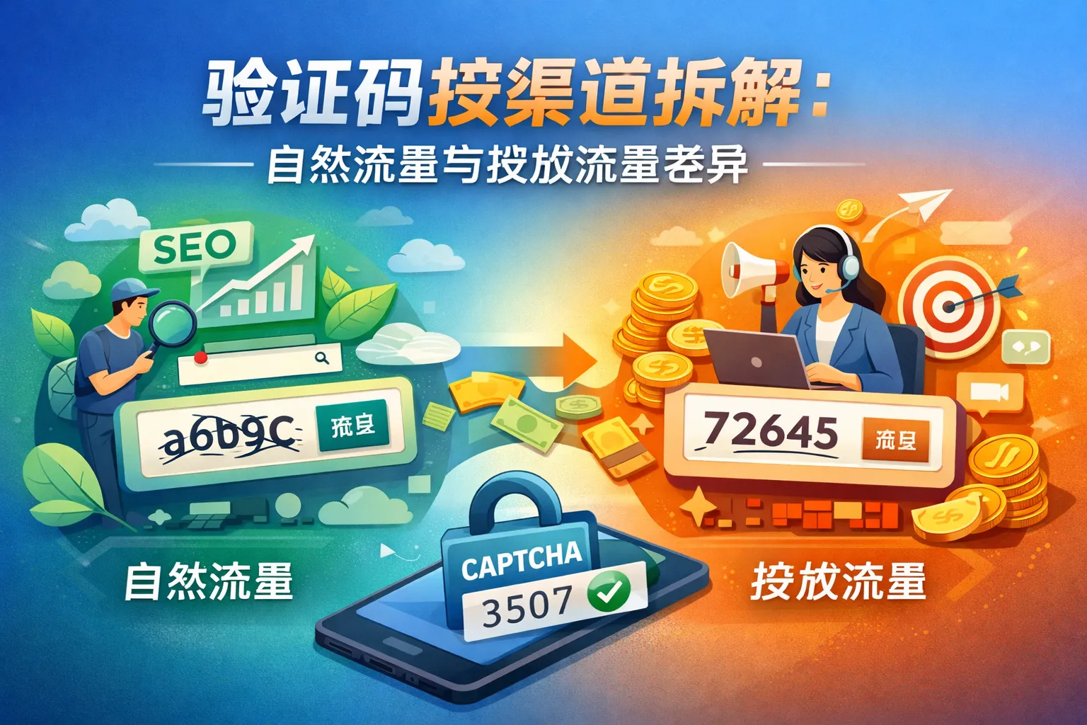 验证码按渠道拆解:自然流量与投放流量差异