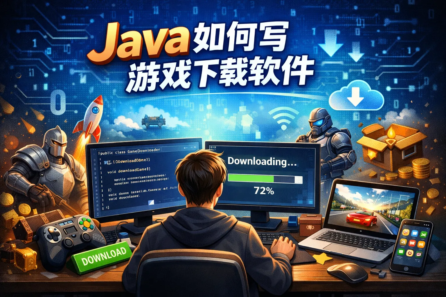 本文结合行业权威报告数据与实战开发经验,详细梳理了Java开发游戏下载软件的核心优势、落地开发流程、核心功能实现方案及合规优化要点,通过对比表格清晰呈现了Java与C++开发游戏下载工具的差异,为不同规模的游戏团队提供了可落地的实操指南,帮助团队借助Java跨平台特性与开源生态快速搭建轻量化游戏分发工具。