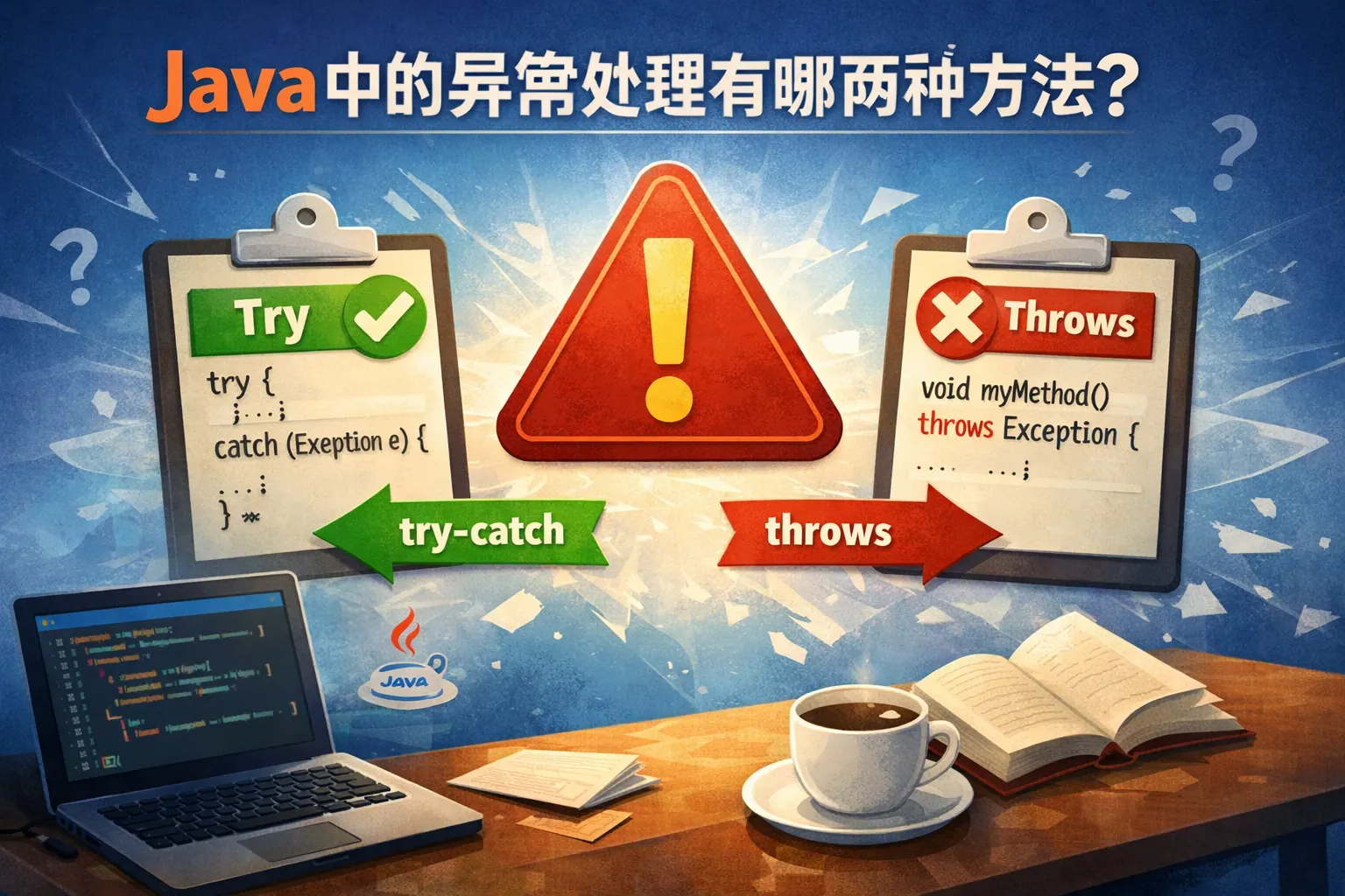 Java异常处理主要包括声明异常与捕获异常两种方式。声明异常通过throws关键字将异常向上抛出,由调用方处理,适用于分层架构中的异常传递;捕获异常通过try-catch在当前代码块中进行处理,适用于需要立即恢复或记录错误的场景。两种方式结合使用,可以提升系统的稳定性与可维护性,是Java健壮编程的重要基础。