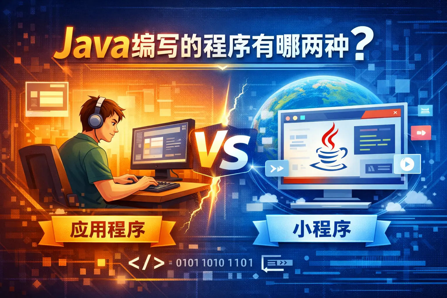 Java 编写的程序从传统分类上主要分为两种:Java 应用程序和 Java 小程序。Java 应用程序以 main 方法为入口,可以独立运行,是当前 Java 开发的核心形态,广泛用于桌面、服务器和企业级系统;Java 小程序则依赖浏览器环境运行,受安全机制限制,随着浏览器技术发展已基本退出实际应用。理解这两种程序的区别,有助于把握 Java 的运行模型与技术演进方向。