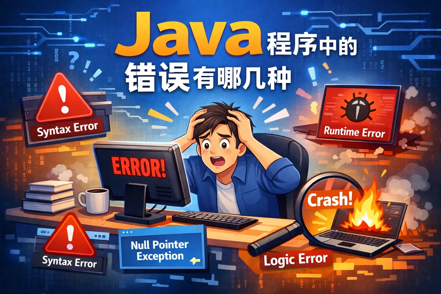 Java 程序中的错误主要可以分为编译期错误、运行时错误、逻辑错误、并发错误以及设计层面的错误。编译期错误由语法和类型检查发现,运行时错误通过异常机制暴露,逻辑错误则表现为结果不符合预期且最难排查,并发错误多见于多线程场景,而设计错误会在系统演进中持续放大影响。系统理解这些错误类型,有助于从工具、代码、测试和架构多个层面提升 Java 程序质量。