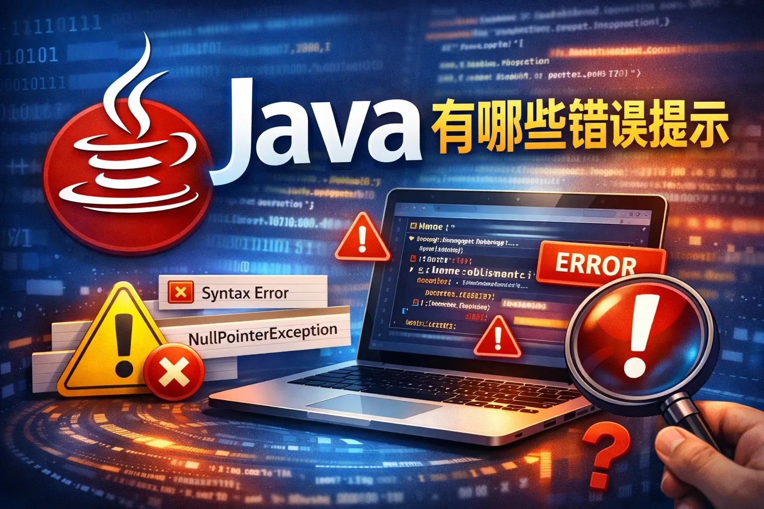 Java 错误提示主要包括编译错误、运行时异常、受检异常、JVM 级错误以及逻辑错误五大类,不同类型对应不同发生阶段和处理方式。编译错误通常由语法或类型问题引起,运行时异常如空指针和数组越界在实际开发中最为常见,受检异常必须显式处理,而 Error 多与虚拟机资源相关。通过规范代码、加强测试、优化异常结构与日志管理,可以有效降低错误发生率并提升系统稳定性。掌握错误分类与排查方法,是提升 Java 开发能力的关键。