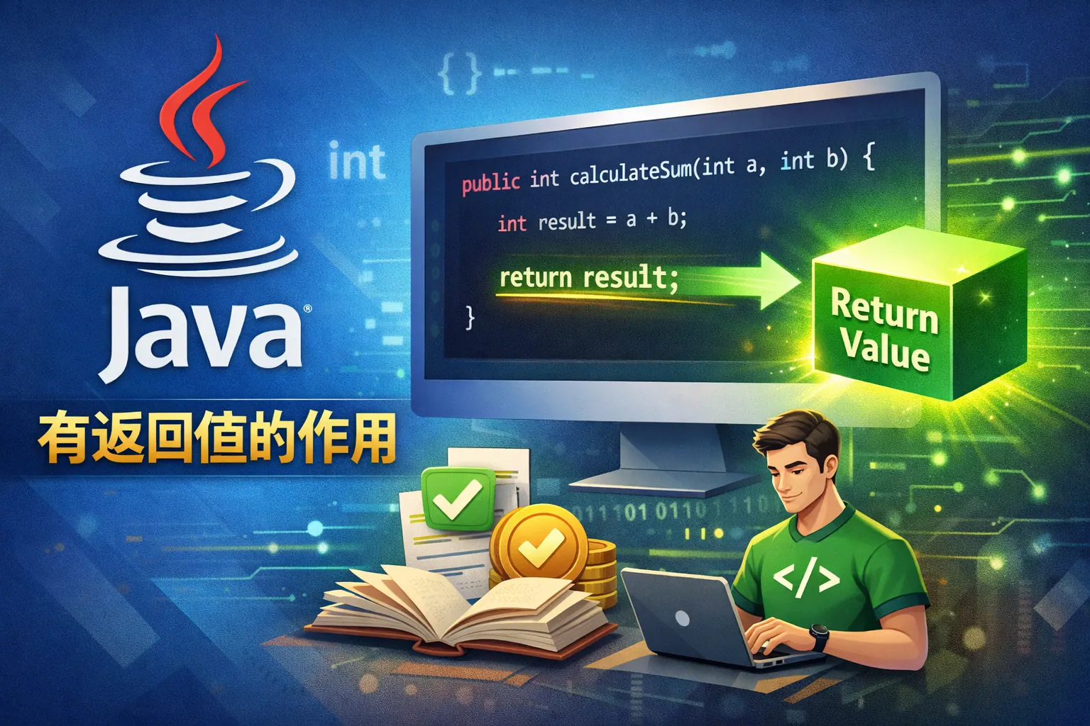 Java 中有返回值的方法用于在方法执行完成后向调用方传递计算结果,是连接业务逻辑与程序结构的关键机制。通过返回值,方法可以清晰表达自身职责,减少对外部状态的依赖,从而提升代码的可复用性、可测试性与可维护性。有返回值不仅有助于模块解耦和接口设计,还能在异常处理与质量保障中发挥重要作用。合理设计和使用返回值,是构建高质量 Java 程序的基础能力之一。