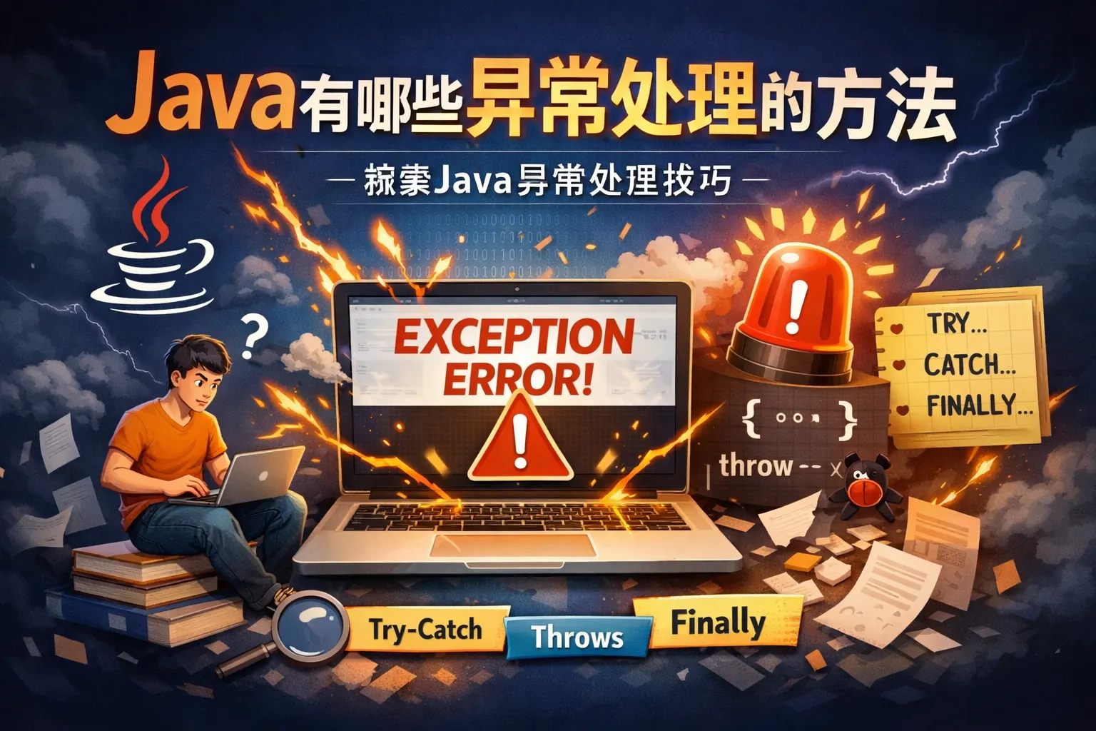 本文系统梳理了 Java 中常见的异常处理方法及其适用场景,指出 try-catch-finally、throws、自定义异常、try-with-resources 与全局异常处理各自承担着不同层级的责任。核心观点在于,异常处理并非单纯捕获错误,而是通过清晰的失败表达与责任划分,提高系统的稳定性和可维护性。开发者应结合业务语义、代码层级与长期维护成本,灵活组合多种异常处理方式,而不是依赖单一手段,从而构建更可靠、更易演进的 Java 应用。