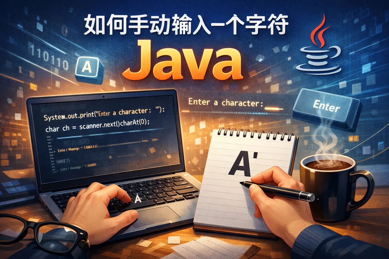 如何手动输入一个字符java