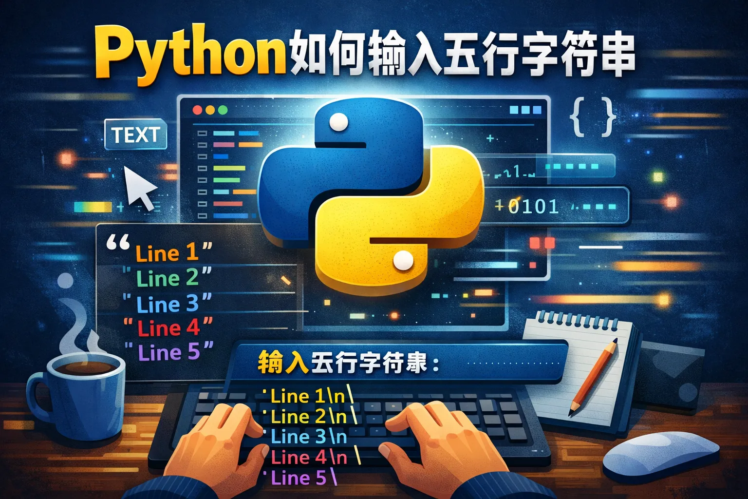 Python如何输入五行字符串