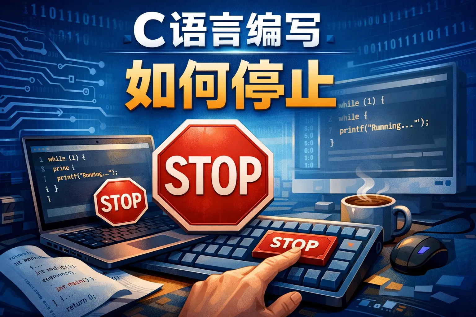 c语言编写如何停止