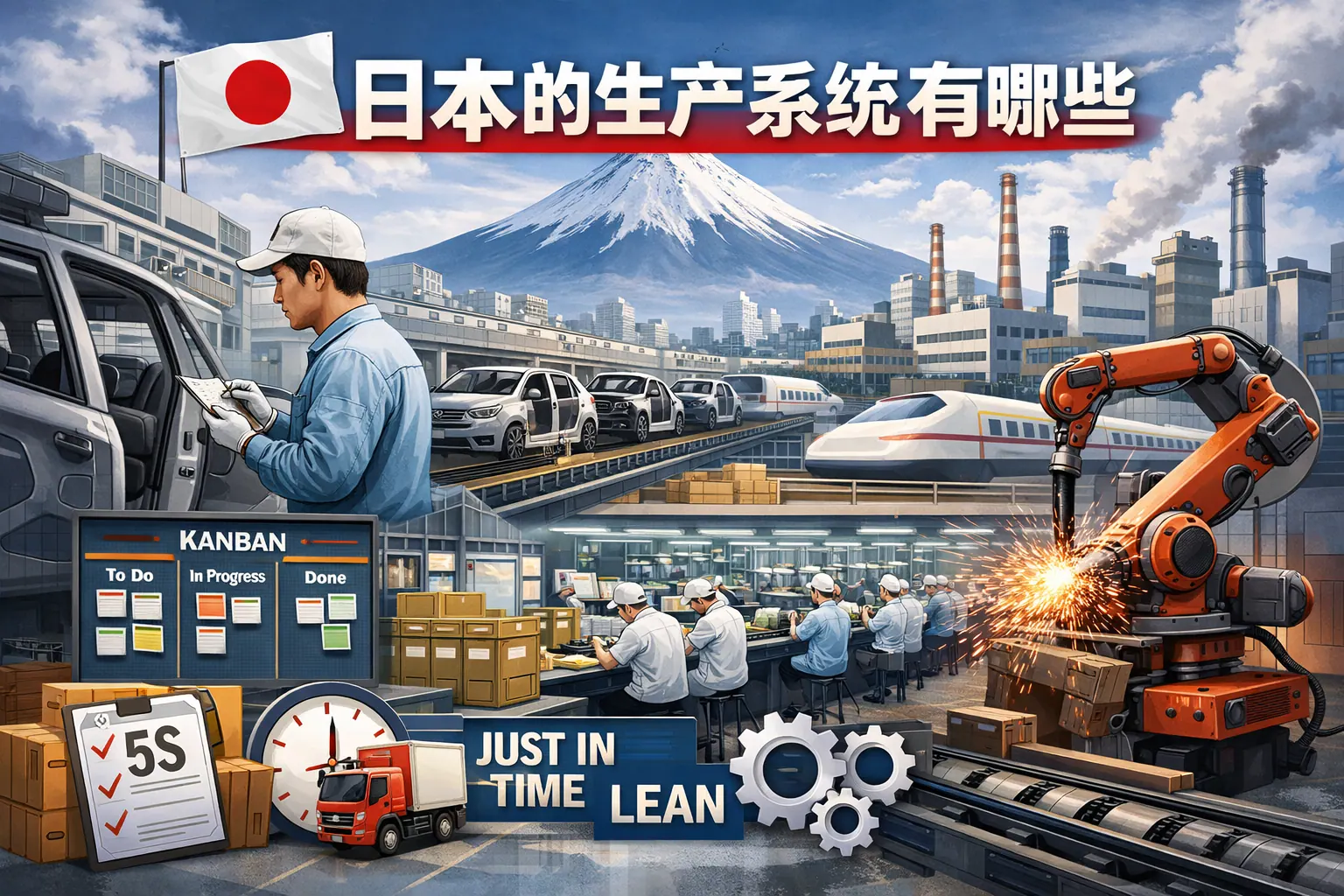 日本的生产系统以丰田生产方式为核心,融合精益生产、准时化、看板管理、全面质量管理、5S与TPM等体系,形成一整套以消除浪费、持续改善和质量内建为导向的系统化方法。这些方法强调拉动式生产、标准化作业和全员参与,在全球制造业与服务业广泛应用。随着数字化和智能化发展,日本生产系统正与数据技术深度融合,向高韧性与可持续方向演进。其核心竞争力仍在于系统思维与长期主义文化。