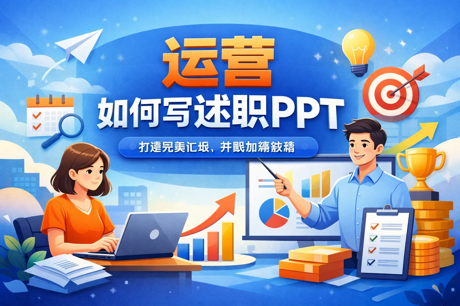 本文围绕广告投放运营述职PPT的全链路制作与落地,从锚定汇报目标、搭建逻辑框架、打磨数据内容、优化可视化设计、规避现场风险到长效复盘迭代,结合权威行业报告数据和场景对比表格,给出了适配不同汇报场景的实战方案,帮助投放运营人员搭建专业且具有说服力的述职PPT,提升汇报通过率与业务展示效果