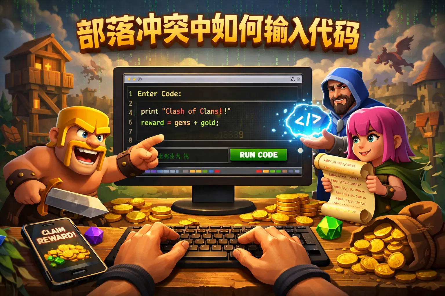 部落冲突中如何输入代码