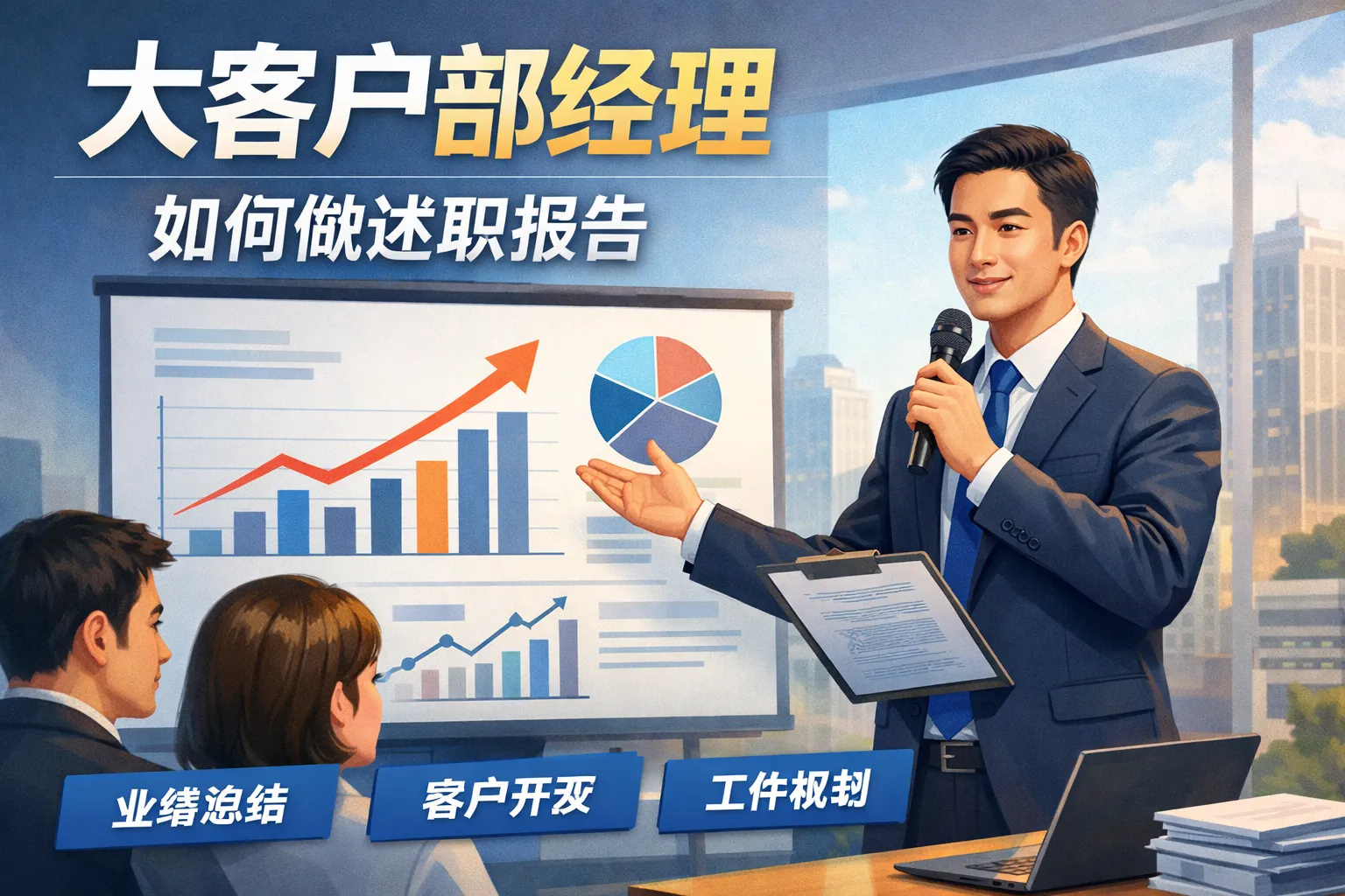 本文围绕大客户部经理述职报告撰写展开,先介绍以年度OKR为底层逻辑搭建三维业绩基线,通过表格直观对比业绩完成率、行业对标值等核心数据;再按客户分层拆解营收贡献与留存表现,具象重点客户攻坚动作与可复用打法;随后复盘真实工作问题并提出协同机制搭建、团队能力提升等解决方案;接着对齐公司战略拆解年度增长目标,适配管理层与内部团队的不同述职场景;最后从可视化表达、时长控制、问题准备等方面打磨述职细节,结合权威行业报告强化内容可信度,为大客户部经理提供可落地的述职全流程指南
