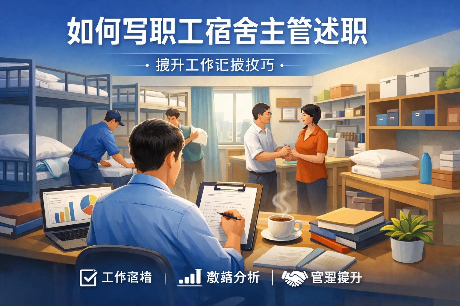 本文围绕职工宿舍主管述职撰写展开,从定位受众需求、搭建标准化框架、数据化举证、适配不同述职场景、规避常见误区到润色复盘,结合权威行业报告与实战经验,详细讲解了述职撰写的全流程,指导从业者打造专业且有说服力的述职报告,提升考核通过率与职业认可度。