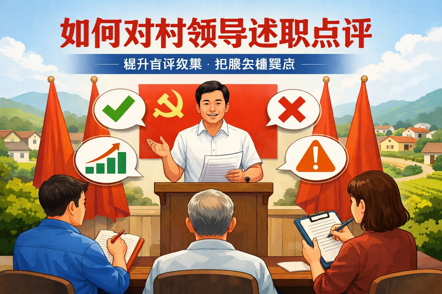 本文围绕村领导述职点评的核心定位、标准化框架搭建、不同场景话术设计、常见误区修正、结果落地转化及标杆案例复用展开,结合权威指南与行业报告,提出兼顾政策要求与基层实际的实操方法,帮助点评者避免空泛形式主义,推动述职点评从考核工具转化为基层治理提升的核心抓手。