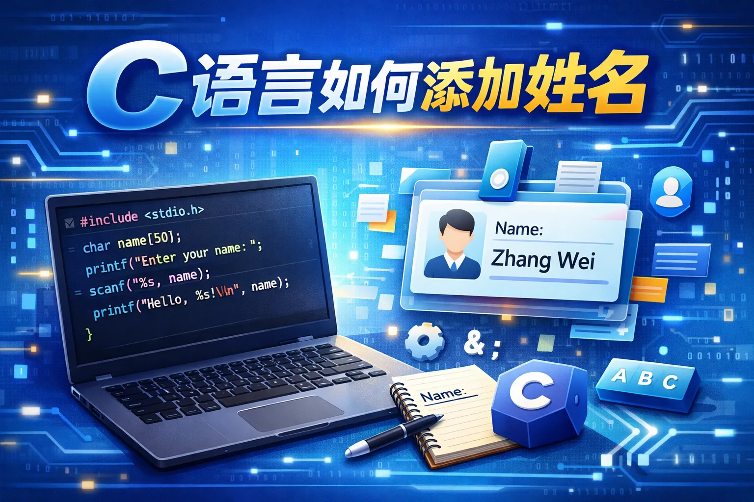 c语言如何添加姓名