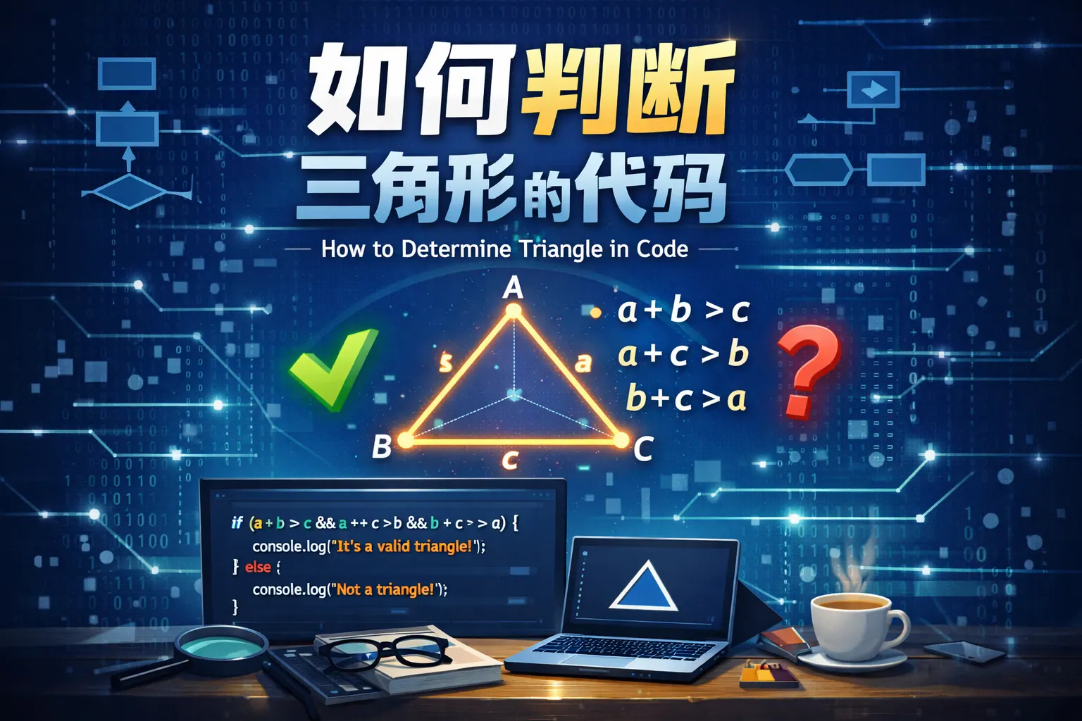 判断三角形的代码核心是验证三边为正数且满足任意两边之和大于第三边,这是三角形不等式的基本原理。在此基础上可进一步判断等边、等腰、不等边或直角三角形。编写代码时应注意边界值、浮点精度与退化情况处理,并通过排序与误差控制优化逻辑。该算法时间复杂度为常数级,在图形系统与几何计算中具有基础性意义。