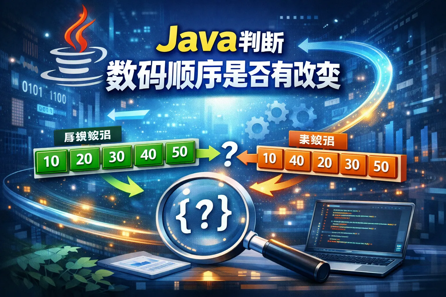 本文系统讲解了在 Java 中判断数组顺序是否发生改变的多种思路与实现原则,核心在于区分顺序一致性与元素一致性这两个概念。通过分析 Arrays.equals、排序后比较以及基于 Map 的频次统计方法,明确了不同方案在性能、适用场景和可维护性上的差异。同时指出在对象数组和真实业务场景中,顺序判断必须结合合理的 equals 设计与清晰的业务语义。整体强调,正确判断数组顺序变化的关键不在技巧,而在对需求本身的准确理解。