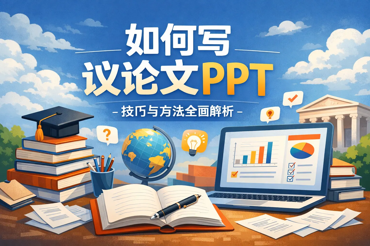 写好议论文 PPT 的关键在于围绕明确论点,重构传统议论文结构,用分论点和可视化论证逐步引导受众接受结论。通过结论式标题、精选论据、逻辑图表和适度反驳,PPT 能在有限页面中完成高效说服。规范引用权威来源并保持简洁一致的版式,有助于提升可信度与理解效率。未来议论文 PPT 将更加重视逻辑清晰与信息设计的融合。