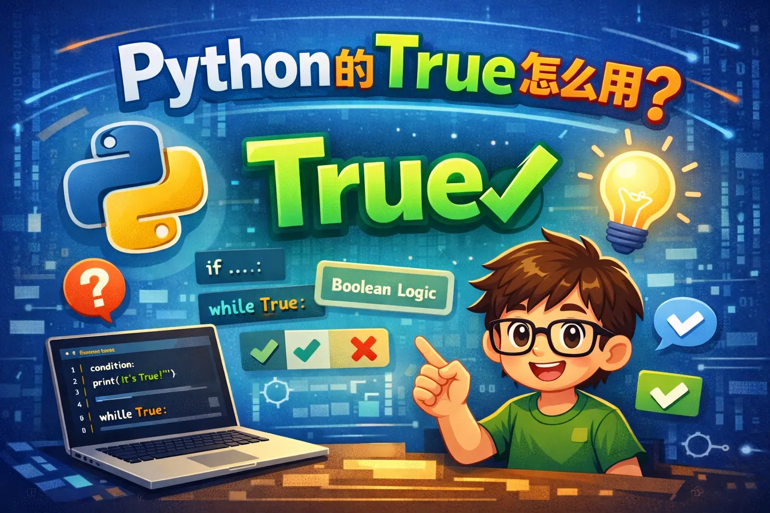 本文详细解释了 Python 中 True 的正确用法,并指出“ture”是拼写错误。True 是布尔类型常量,表示逻辑真值,广泛用于条件判断、循环控制、逻辑运算和函数返回。文章系统介绍了 True 的基本语法、与 False 的区别、在逻辑运算中的规则、Truth Value 机制以及常见错误写法,并结合官方文档说明其类型特性。掌握 True 的使用,是理解 Python 控制流程和程序逻辑的基础,对初学者尤为重要。