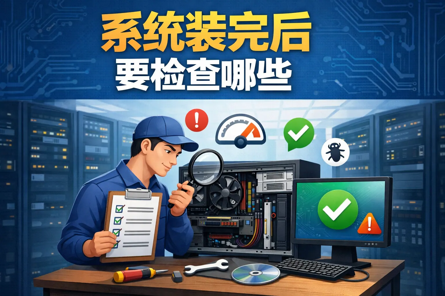 装好系统后不能只确认能否开机运行,还应系统性检查启动状态、驱动与硬件兼容、网络连通性、安全配置、补丁更新、性能表现、数据完整性、备份机制、权限管理以及日志监控等关键环节。通过建立标准化验收清单和文档归档流程,可以有效降低系统故障率与安全风险,提高后期运维效率。未来趋势是通过自动化部署与持续监控,将系统检查流程前移并标准化,实现更高稳定性与安全性。