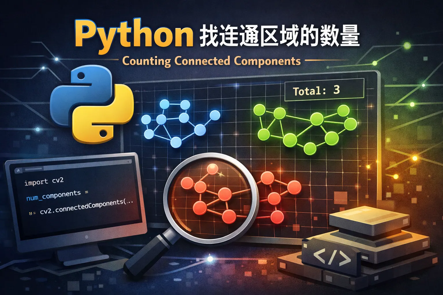 本文系统讲解了在 Python 中查找连通区域数量的核心思路与实现方法,指出本质是将问题抽象为图的连通分量统计。文章从连通区域的定义与应用出发,详细分析了 DFS、BFS 与并查集三种主流算法在 Python 中的实现特点与适用场景,并通过对比表格帮助读者理解不同方案的性能差异。最后结合工程实践给出优化建议,并展望了在大规模数据与图分析背景下连通区域算法的发展趋势。