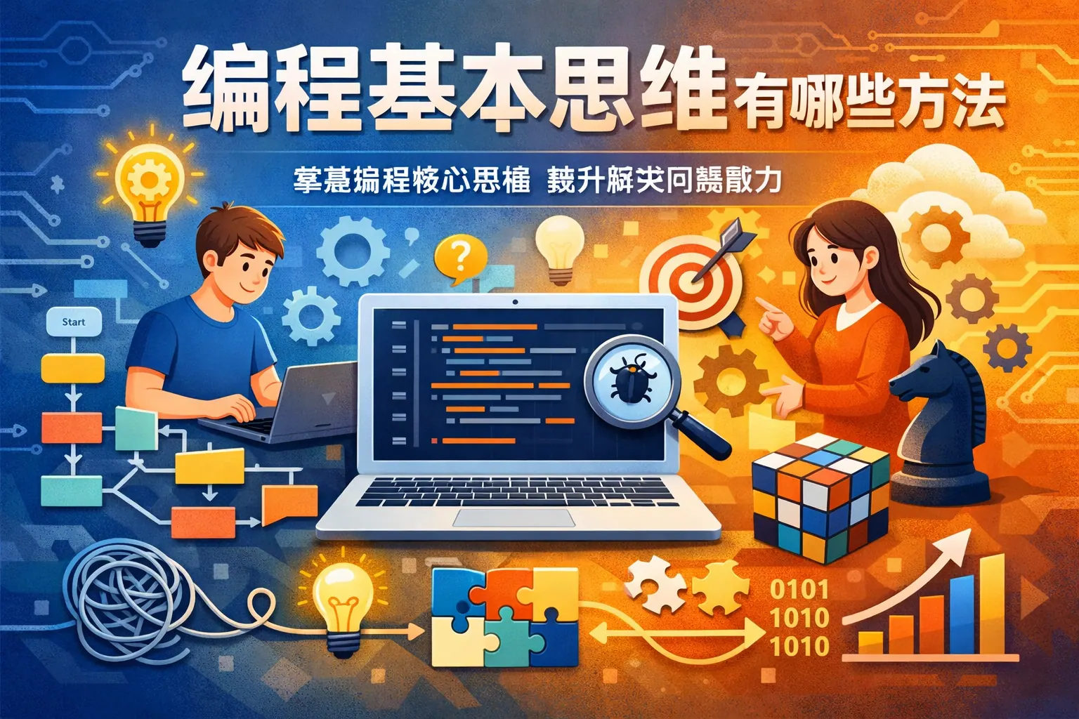 编程思维是一种以逻辑和结构为核心的问题解决方式,包含分解思维、抽象思维、逻辑推理、算法优化、结构设计、数据分析以及迭代调试等能力。这些思维方式帮助人们将复杂问题拆解为可执行步骤,构建清晰模型并持续优化系统。掌握编程思维不仅提升技术能力,也能增强决策效率和系统化思考能力,在数字化时代具有长期价值。