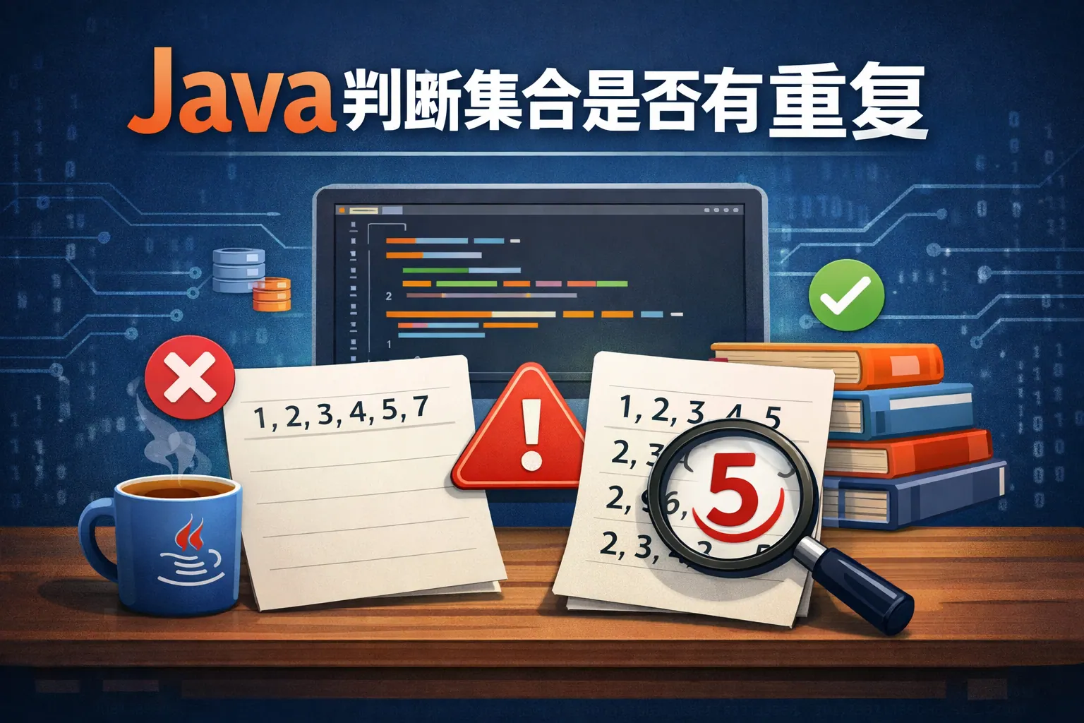 Java 判断集合是否有重复数据,核心是利用 Set 的唯一性机制或 Stream 分组统计实现判重。其中通过 HashSet 的 add 方法在遍历过程中检测重复,是性能与可读性兼顾的常用方式;若需统计重复次数,可使用 Stream 分组。对于自定义对象,必须正确重写 equals 和 hashCode 方法,否则判重逻辑会失效。在大数据量或高并发场景下,还需关注容量初始化与线程安全问题。合理选择判重策略,是保障数据一致性与系统性能的重要基础。