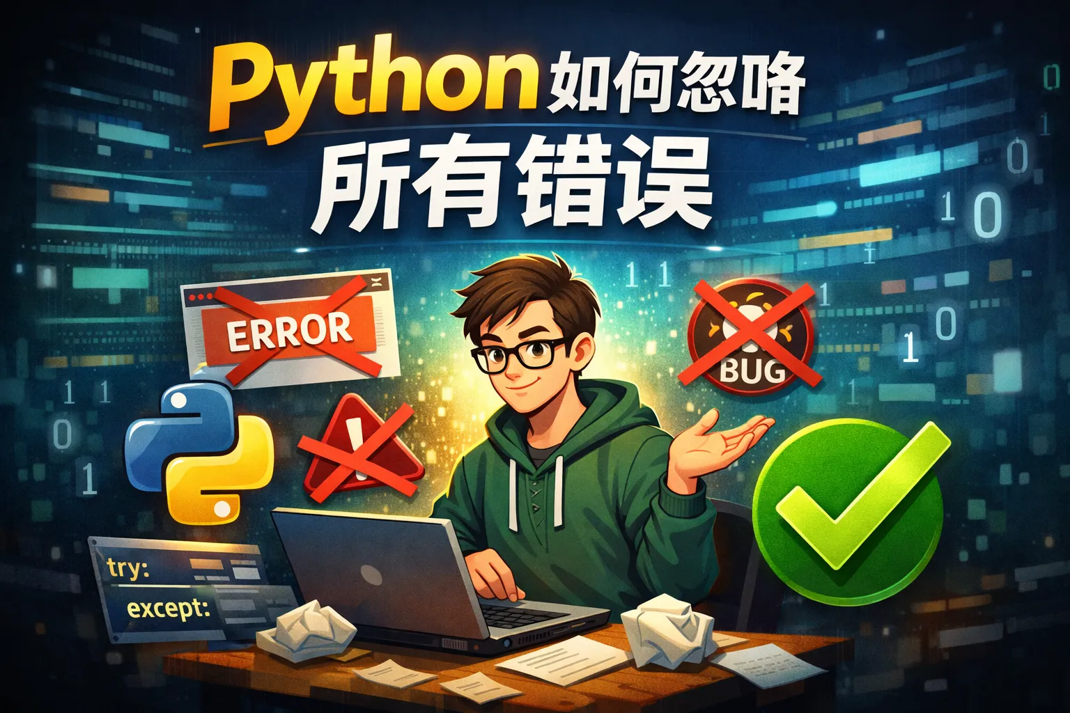 要在Python里忽略所有错误,可用try/except捕获BaseException实现全覆盖,也可用装饰器统一兜底返回默认值,并在脚本入口设置空的sys.excepthook防止未捕获异常终止;若只需部分忽略,可用contextlib.suppress针对特定异常,对非异常信息可通过warnings和logging过滤。完全屏蔽异常会带来可靠性、安全与合规风险,因此建议采取分层容错与选择性忽略,保留最小化的可观测性信号,并将被抑制的错误纳入协作与审计闭环以避免长期隐患。