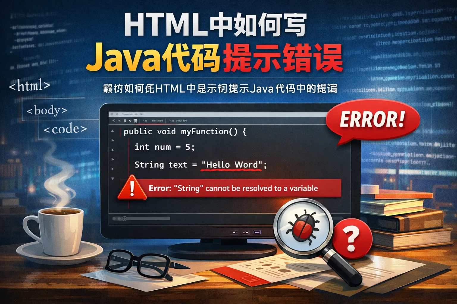 html中如何写java代码提示错误