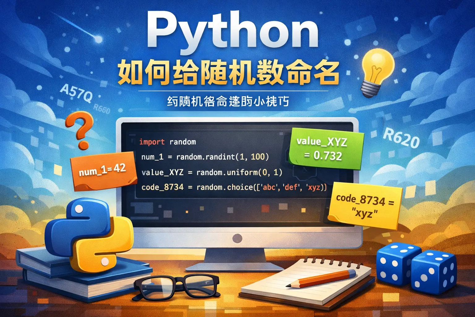 Python中,变量名称本身就是用于标识存储的数据。如果你生成一个随机数,可以直接将其赋值给变量,这个变量名就相当于是随机数的名字。例如: