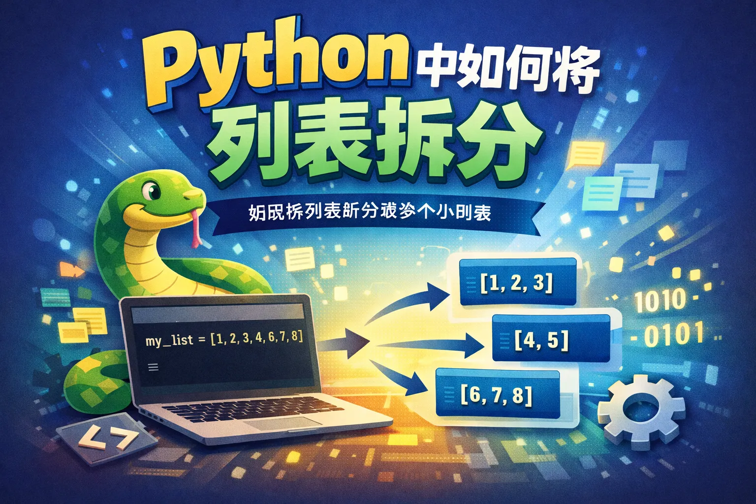可以使用列表的切片操作,配合循环或者列表推导式,将列表按指定大小拆分。例如,使用列表推导 [lst[i:i+n] for i in range(0, len(lst), n)],其中 lst 是原列表,n 是拆分时的每个子列表大小。