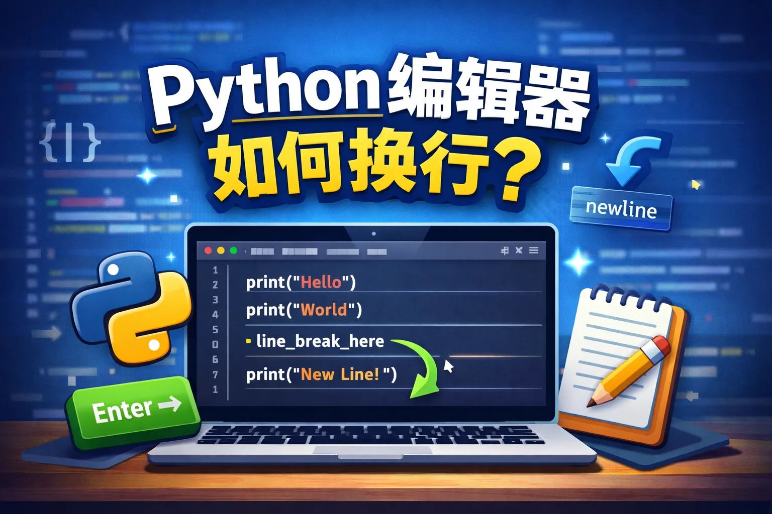 我想在Python编辑器里写多行代码,该怎么操作才能实现换行?