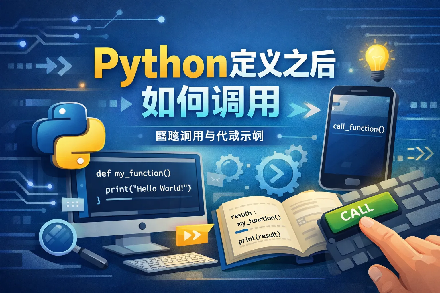 在Python中,调用函数只需要输入函数名称并使用一对圆括号即可。如果函数需要参数,则在括号内传入相应的值。例如,定义了函数 def greet(name): print('Hello, ' + name),调用时写作 greet('Alice')。这样函数会执行并输出'Hello, Alice'。