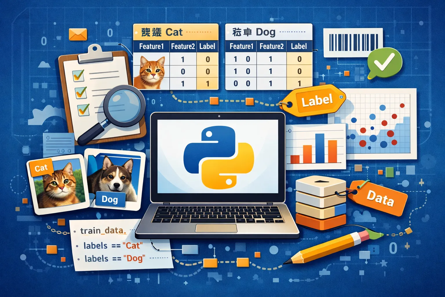 可以使用字典(dict)将标签作为键,数据作为值进行存储,也可以使用pandas库中的DataFrame,利用列名作为标签,对数据进行标记。此外,列表中的元组或自定义类也可以用来关联数据与对应标签。