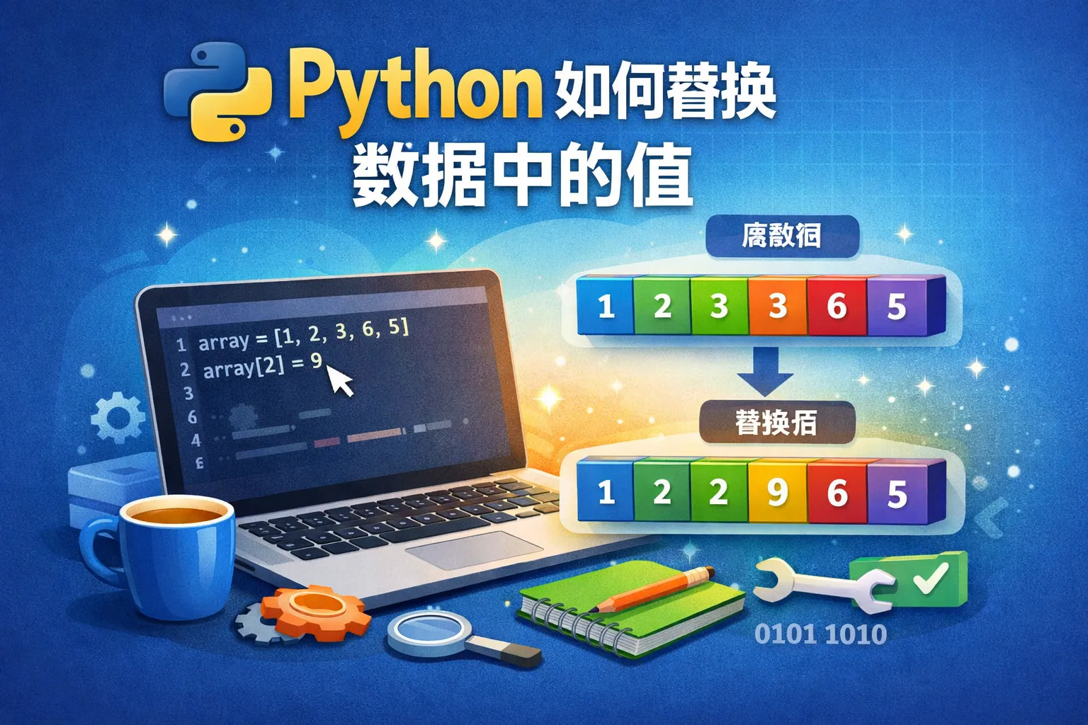 可以使用循环遍历数组,通过判断条件选择替换元素。另外,列表推导式也能快速生成新数组,示例:new_arr = [new_value if x == old_value else x for x in arr],这将替换所有等于old_value的元素。