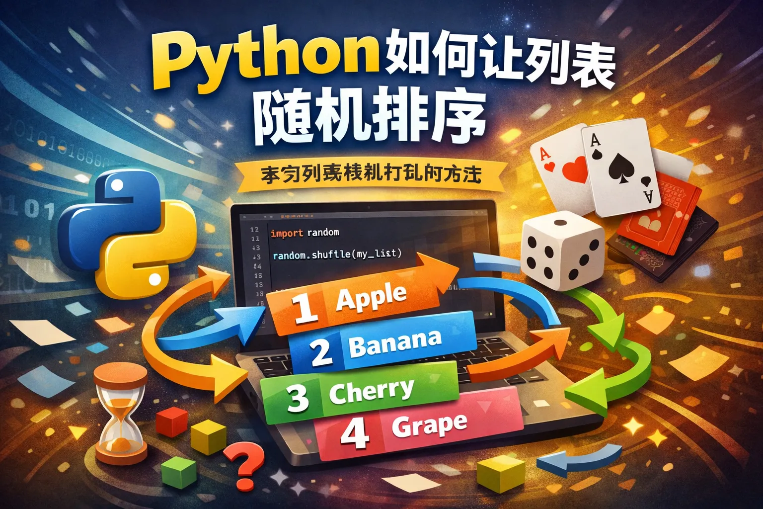 可以调用列表的sort方法,并使用一个生成随机数的函数作为key,这样列表会根据随机数排序,从而达到随机排序效果。示例代码: