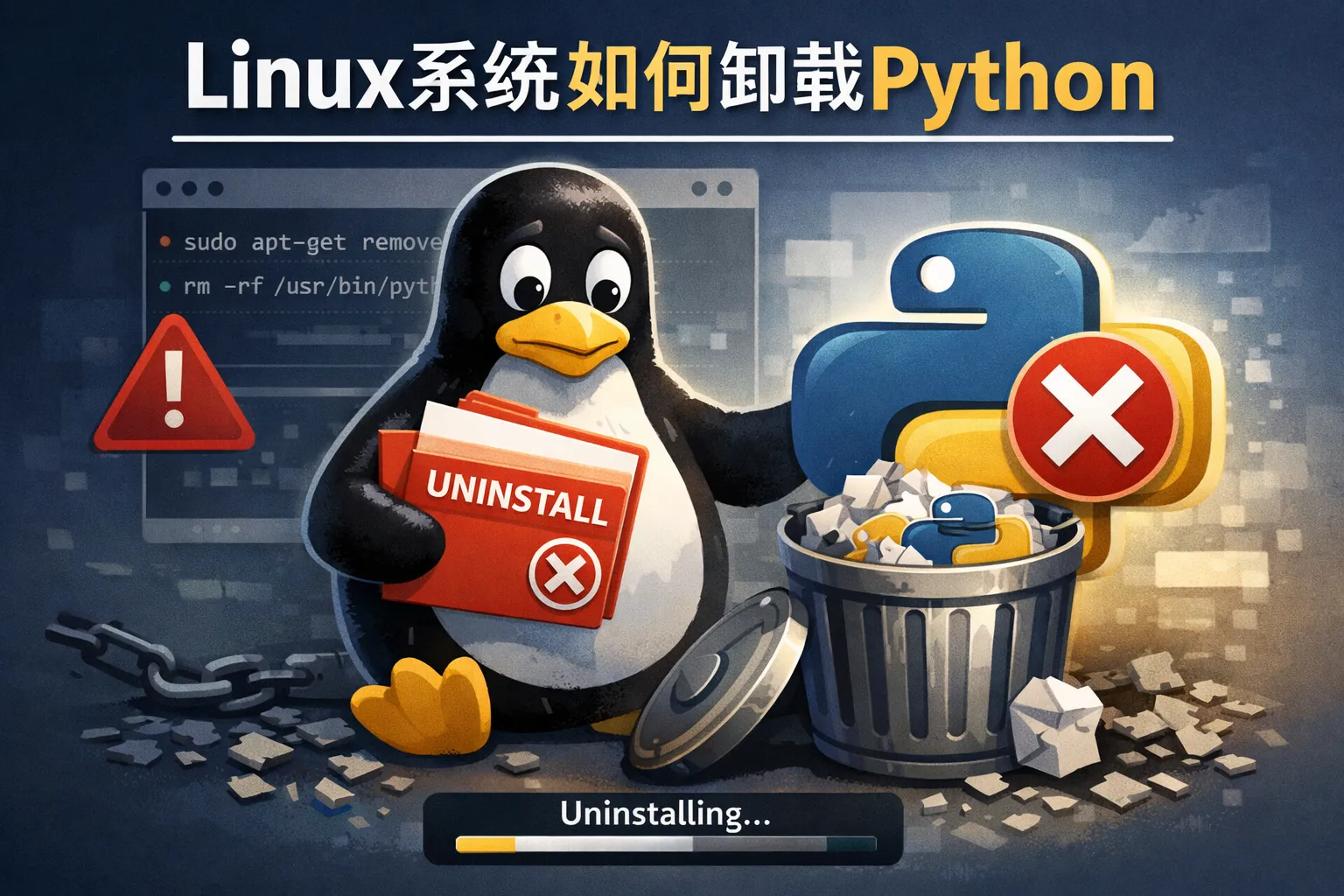 部分Linux系统依赖Python来运行系统工具,卸载系统默认的Python版本可能导致系统功能异常。建议避免卸载系统默认的Python版本,或仅对自身安装的Python版本进行操作,确保不会影响系统的稳定运行。