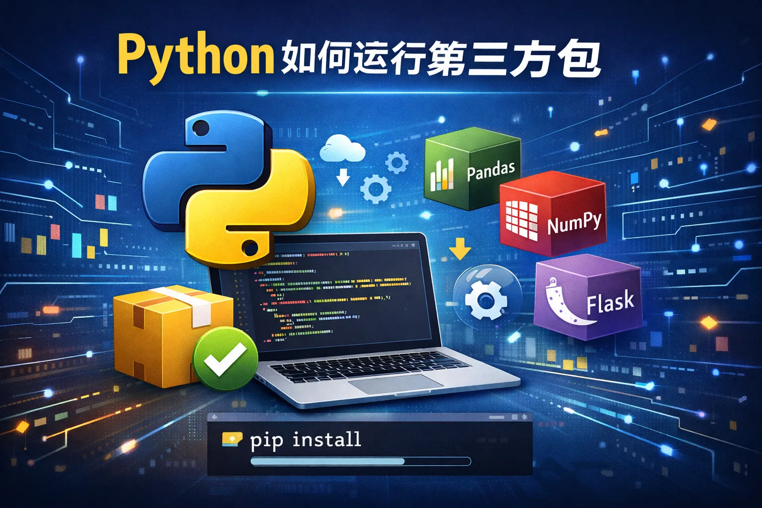 可以通过Python自带的包管理工具pip来安装第三方包。在命令行中输入 pip install 包名 即可安装对应的第三方包。确保你已经连接网络,pip会自动下载并安装你需要的包。