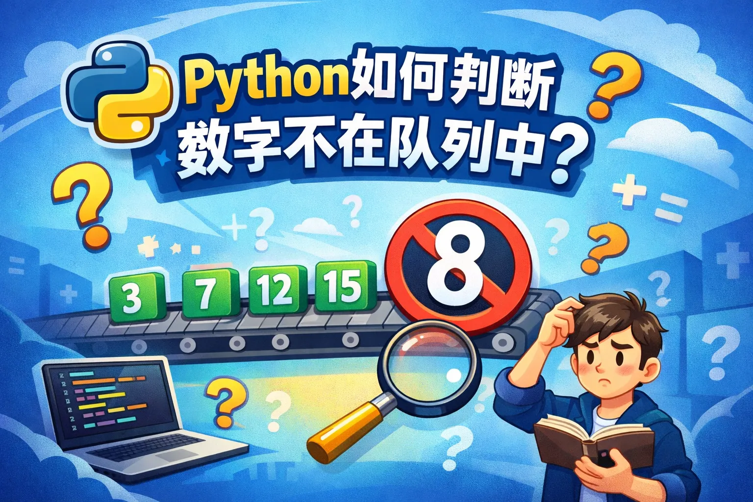 在Python中,可以直接使用'in'关键字判断元素是否包含在序列中。假如队列是一个列表或其他可迭代对象,可以通过'if num not in queue:'语句判断数字是否不在队列中。