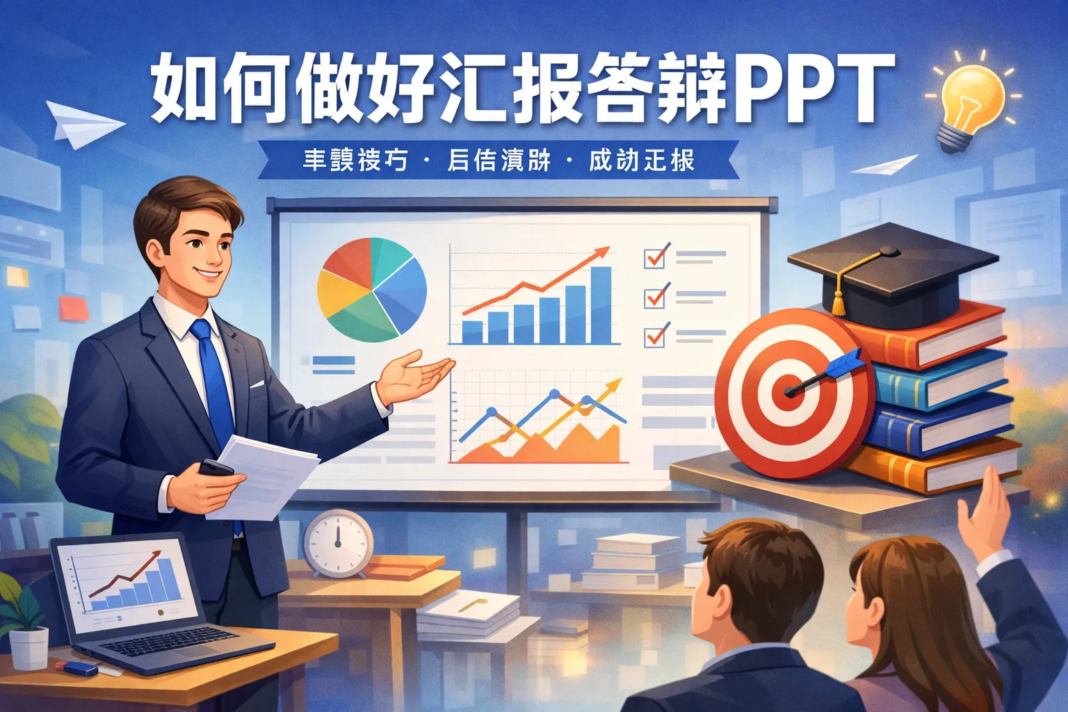 提前熟悉PPT内容与演讲脚本,做好充分的预演能够增强自信。针对潜在问题准备备用方案,如打印资料或储存多个版本的PPT。遇到难以回答的问题时,保持冷静,诚实回答或承诺后续回复,有助于维护专业形象。