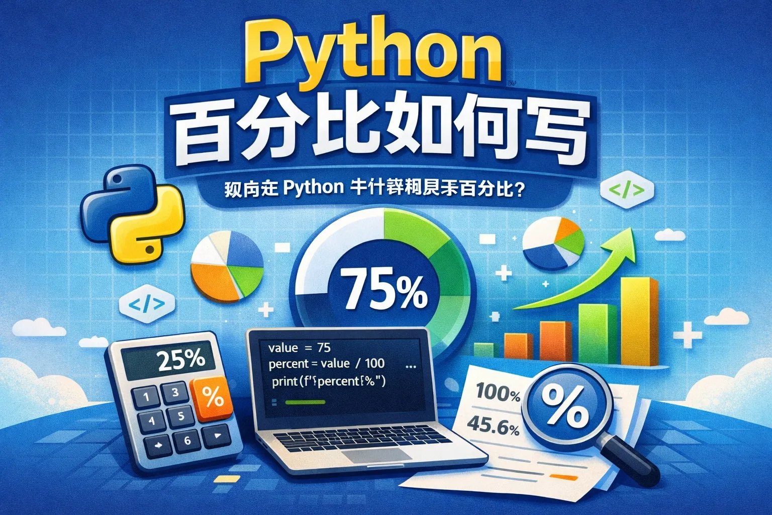 在Python中,可以用除法计算部分与整体的比值,再乘以100得到百分比。例如,如果有num表示部分,total表示整体,计算百分比的代码为:(num / total) * 100。