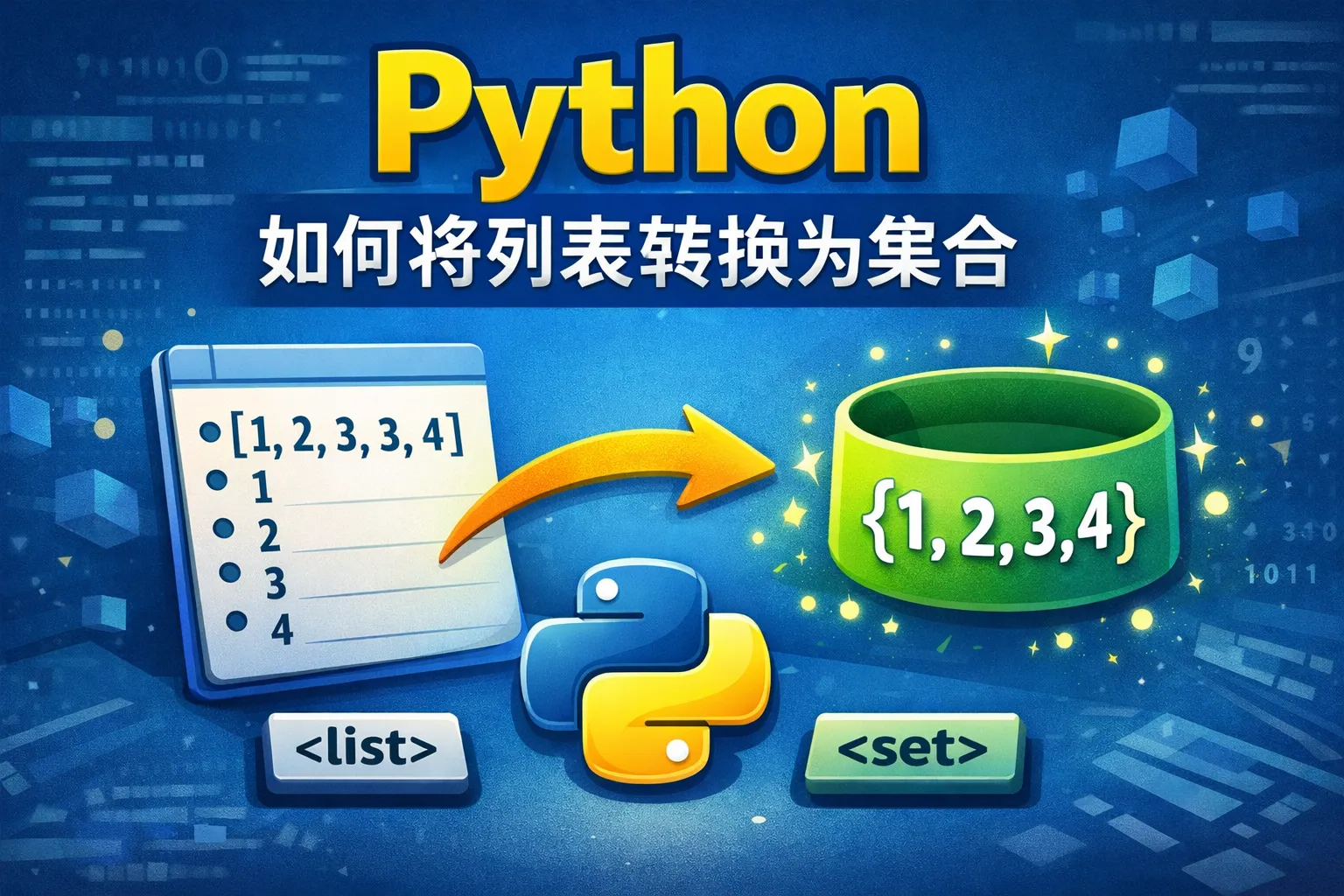 在Python中,可以使用内置的set()函数将列表转换为集合。只需要将列表作为参数传入set(),例如:my_list = [1, 2, 3]; my_set = set(my_list)。这样就会得到一个集合类型,且自动去除列表中的重复元素。
