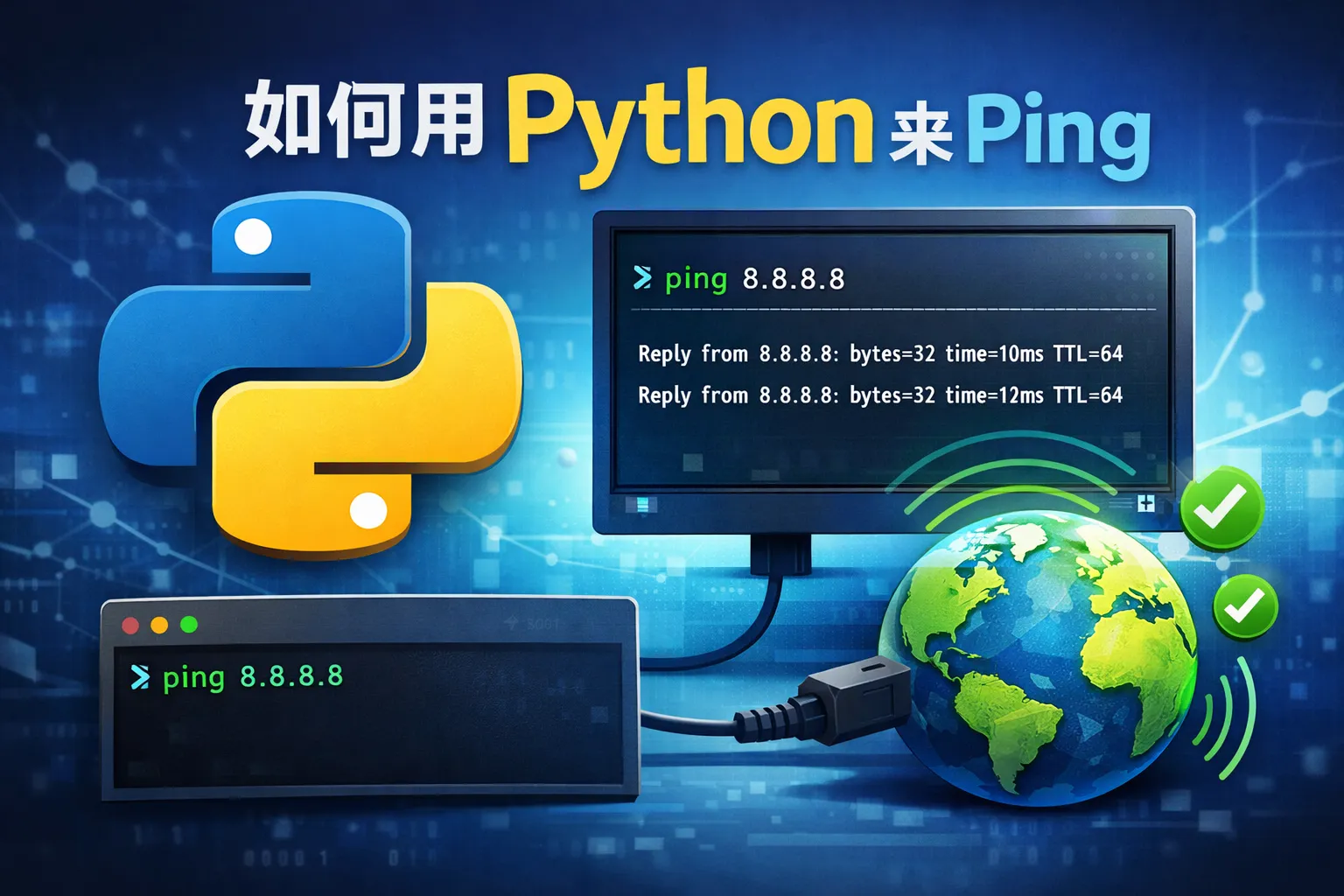 通常可以使用Python内置的subprocess模块来调用系统的ping命令。通过subprocess模块执行命令行指令,可以实现类似于在终端中ping的功能。此外,也可以使用第三方库如pythonping专门进行ICMP请求。