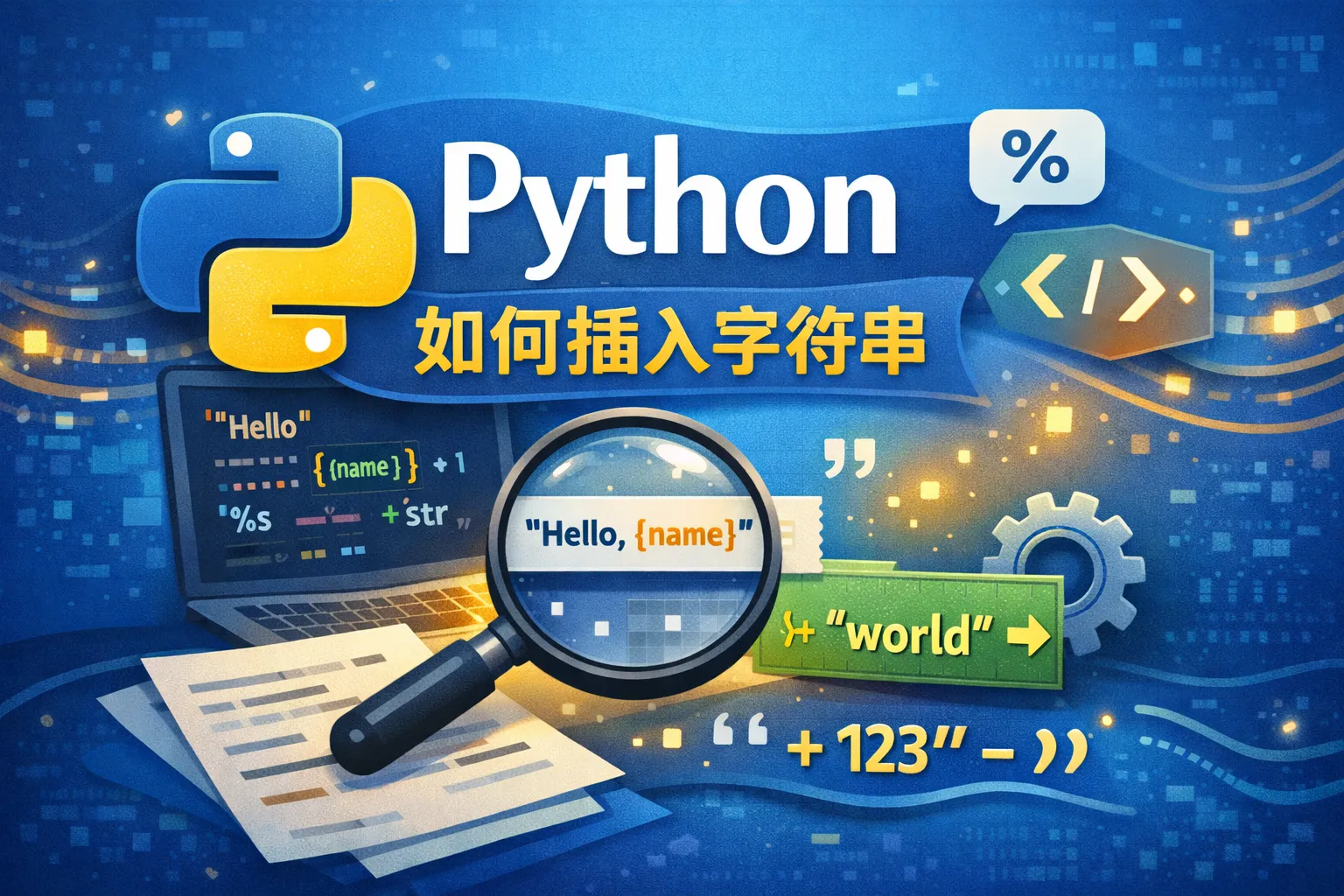 虽然Python本身没有直接的插入字符串方法,但可以使用replace()方法、join()函数或格式化字符串来实现类似功能。例如,使用格式化字符串通过模板将变量插入指定位置,或通过join把列表元素组合成新字符串。