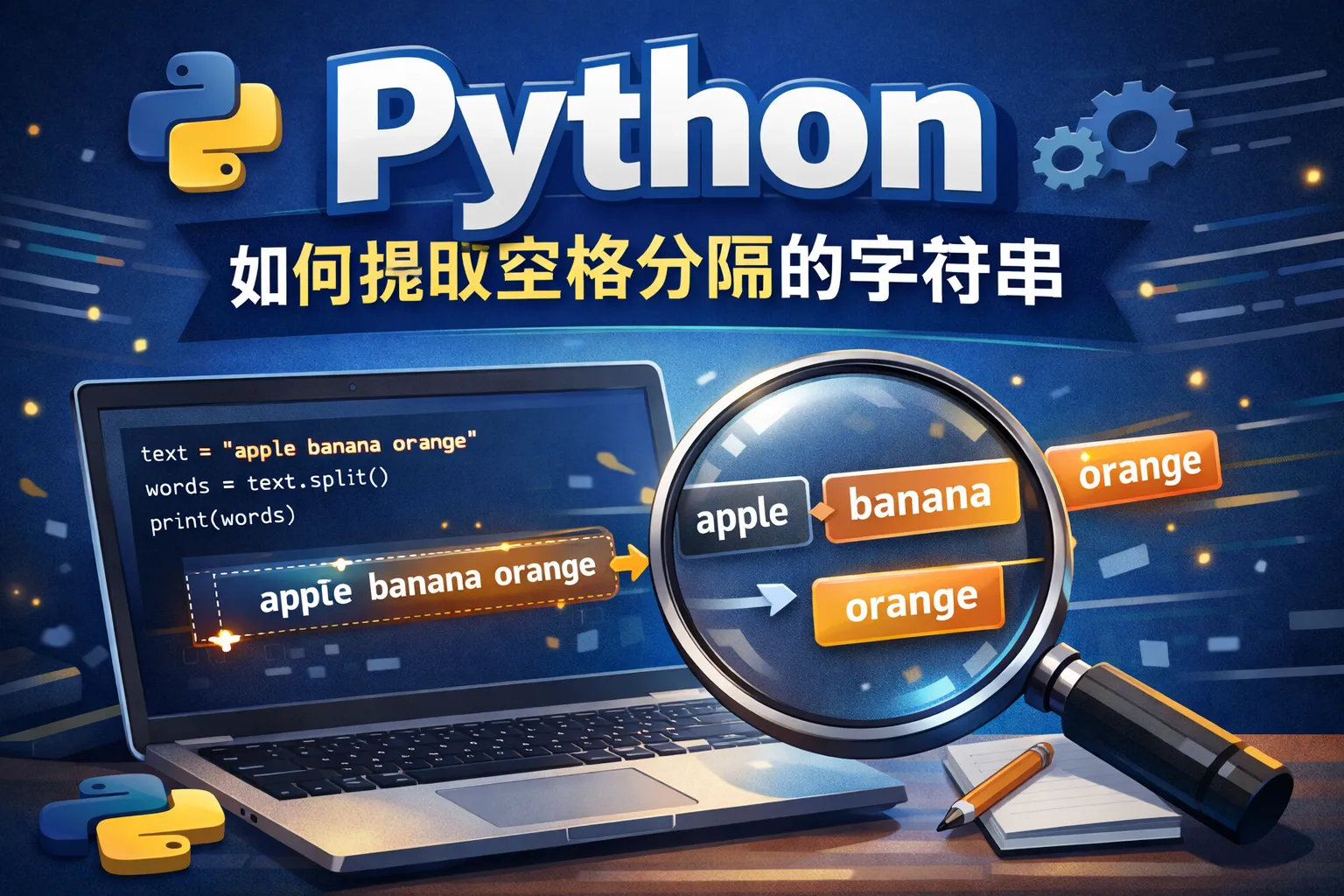 在Python中,字符串对象的split()方法可以用来按照空格将字符串拆分成多个部分。只需要调用str.split()即可,它会默认以空格为分隔符,并返回一个包含所有单词的列表。比如:words = 'hello world python'.split(),结果是['hello', 'world', 'python']。