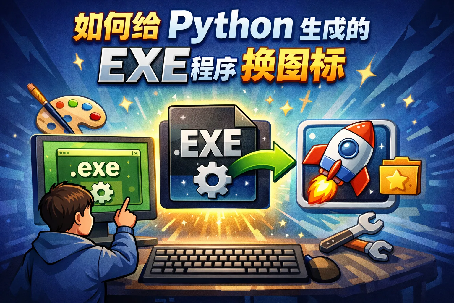 我已经使用Python生成了exe程序,想更换图标但不想重新打包,是否有简便的方法实现?